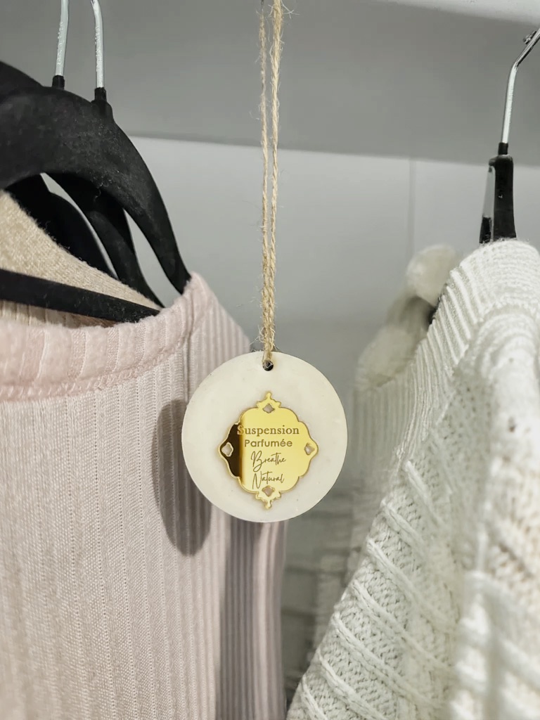 - Suspendez la pastille parfumée dans vos dressings, armoires ou petits espaces fermés pour diffuser délicatement son parfum.